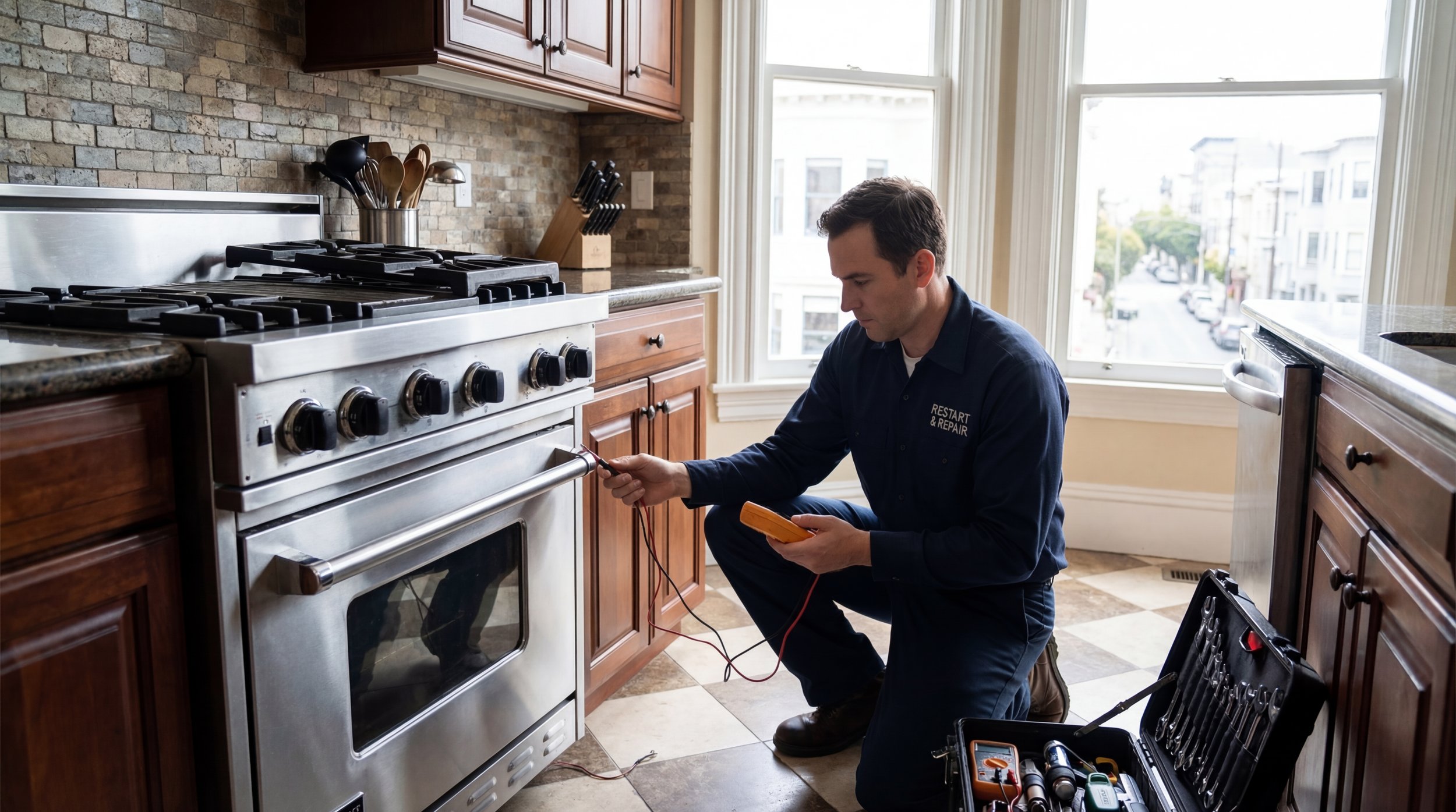 Don't let a broken stove ruin your family dinner. We specialize in repairing gas and electric ovens, ranges, and cooktops. Our licensed technicians safely and quickly restore your cooking appliances across Richmond, Oakland, and Marin County.